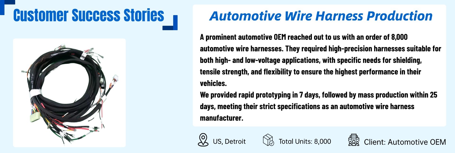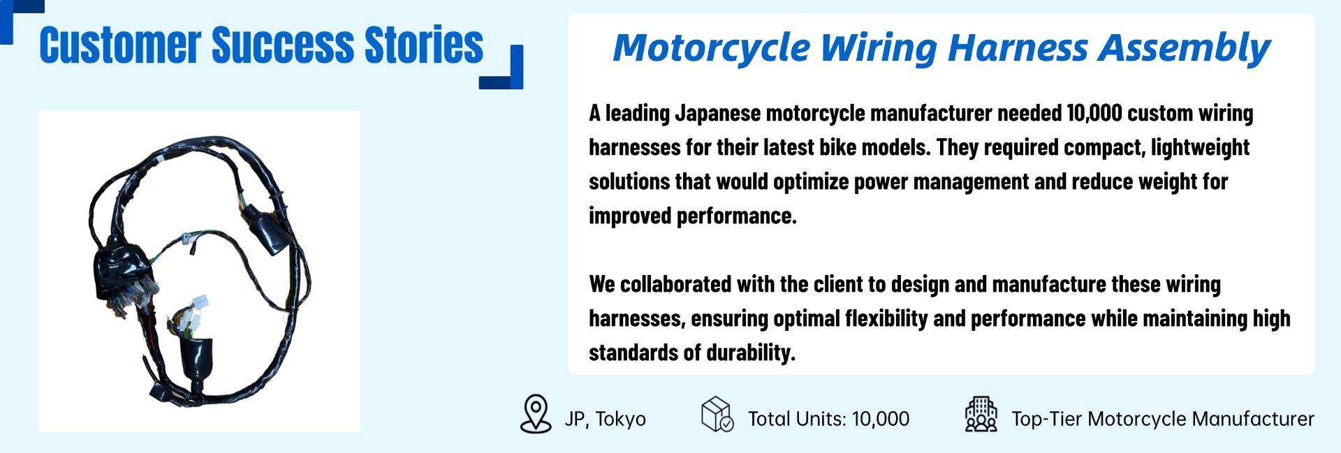 We are flexible and capable of researching and producing various types of wiring harness, especially automotive wire harnesses. In order to increase production capacity to cope with growth in overseas markets, we relocated our factory to Dongguan, China in 2016. The new plant is more than 12,000 square and with 3 workshops that produce different types of product, including automotive wiring harness, electronic wiring harness and data transmission cables.